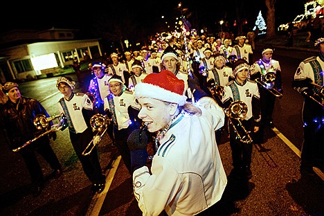 The Lake City and Coeur d'Alene high school marching bands and their thumping drum rhythms inspired youngsters and made parents proud. Some moonshining Shriners gave people a good laugh. Carolers, dancers, snowmen, and some people in Christmas-themed costumes put everyone in the holiday spirit.