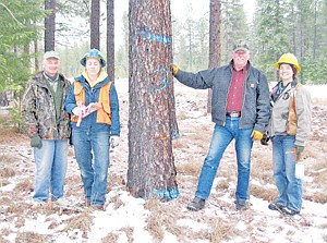 Accompanying Geber in the marking of the trees Monday was Forester April Rainey, Rod and Gun Club President Don Clark and Club Board Member Dan Ackerman.