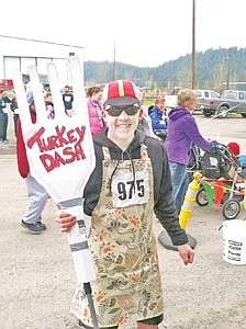 Cody Pate, in his award-winning costume, holds his turkey fork before the 5K. Pate won a $25 gift certificate to Mountain Meadows for the costume.