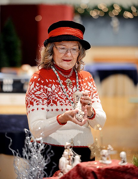 Pauline Sjordal sets up a ceramic Nativity set on Tuesday at the Church of Jesus Christ of Latter-Day Saints in Kalispell. Sjordal’s set is one of more than 400 that will be on display at the church on Thursday from 5 to 9 p.m. and on Friday from 1 to 9 p.m.
