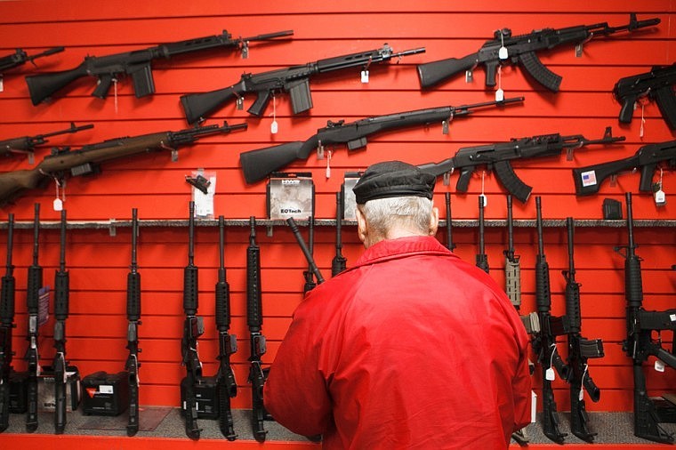 A customer browses the wall of AR-type rifles at Frontier Guns and Ammo in Evergreen. Tuesday, Nov. 20, 2012 in Kalispell, Montana.