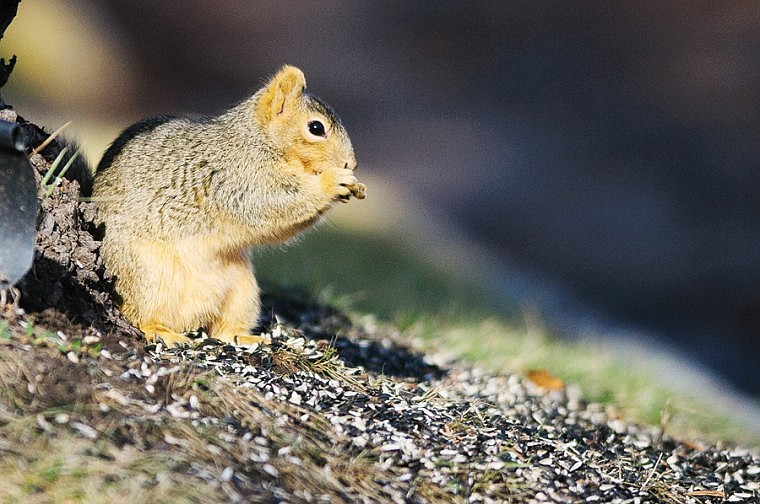 Patrick Cote/Daily Inter Lake A squirrel feeds on spilled bird seed at the base of tree along Seventh Avenue West on Wednesday afternoon in Kalispell. Wednesday, Nov. 28, 2012 in Kalispell, Montana.