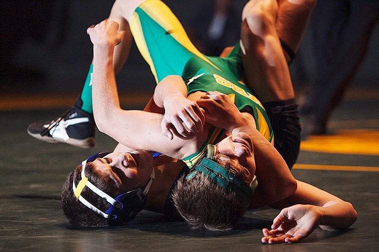 Shonn Roberts finished the dual with Columbia Falls’ seventh pin, needing just 48 seconds to subdue Whitefish’s Garrett Rice in the 112-pound bout.