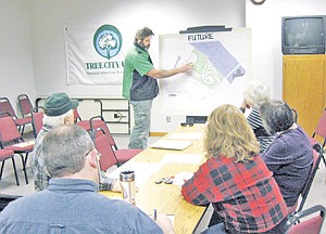 Veterans Committee Secretary Brent Teske explains to Park Committee members the veterans’ the plans for handicapped accessibility at the memorial site.