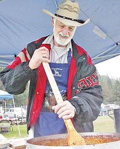 Libby's Montana Hutton patiently stirs his Texas style "Montana Chili" during Saturday's sixth annual chili cook-off at the Heritage Museum.