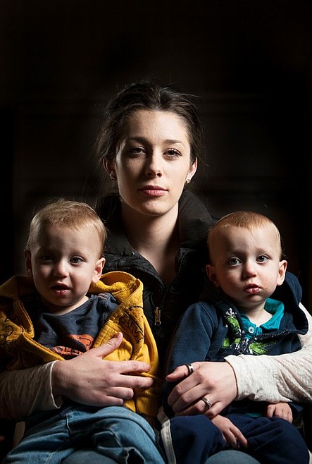 Heather Fredenberg holds her 18-month-old twin sons Paxton, left, and Bentley. Heather's husband and the twins' father, Dan, was shot to death Sept. 22.