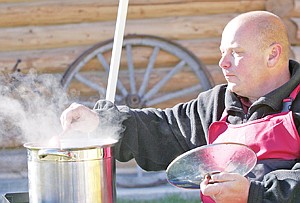 Steam rises Saturday morning as Bill Thompson stirs a pot of Chili to Go. (No. 9)