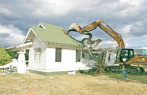 The white house at 603 California Ave. came down Tuesday to make room for the new Glacier Bank building. Built in 1915 and known as the "Mitchell" house, it was once occupied by Fred and Marvel Thompson.