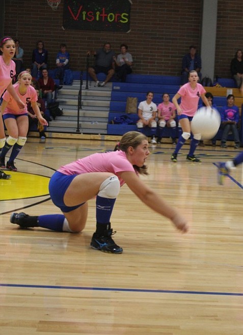 Logan Beckman digs deep to get the ball during the game against Libby Tuesday night.