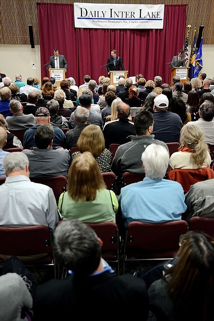 The trio debated in front of 300 people at Flathead Valley Community College. The debate was sponsored by the Daily Inter Lake and as many as 700 additional people watched the debate live-streamed on the Inter Lake's website.