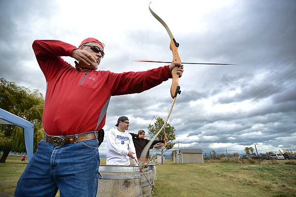 Dave Heine of the team Kill Shot takes aim and fires in the archery competition on Saturday afternoon, October 13, at the Stillwater Christian School's Shoot Out fundraiser.