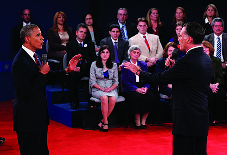Under the format agreed to in advance, members of an audience of 82 uncommitted voters posed questions to the president and his challenger.