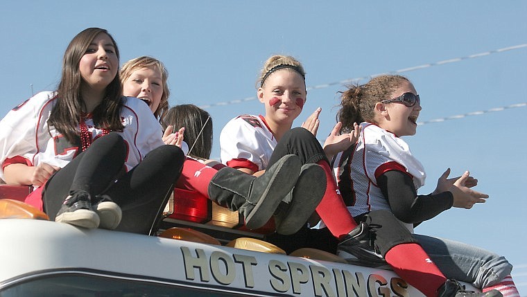 Lady Savage Heat volleyball and cross country squads ride the fire truck through town.