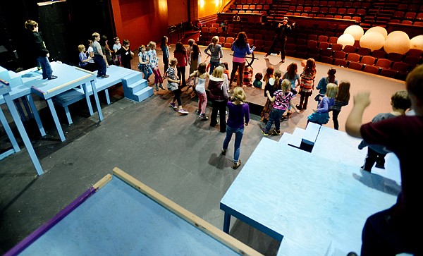 Betsi Morrison, Alpine Theatre Project's artistic director, calls all the children to their stage positions for the Mysterious Fathoms Below scene Oct. 16 at the Whitefish Performing Arts Center.