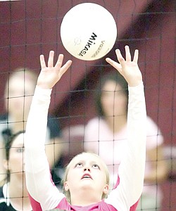 Jenna Peterson, Eureka’s 6-foot 2-inch middle hitter, stopped nearly every ball that came her direction and had five blocks to show for it.