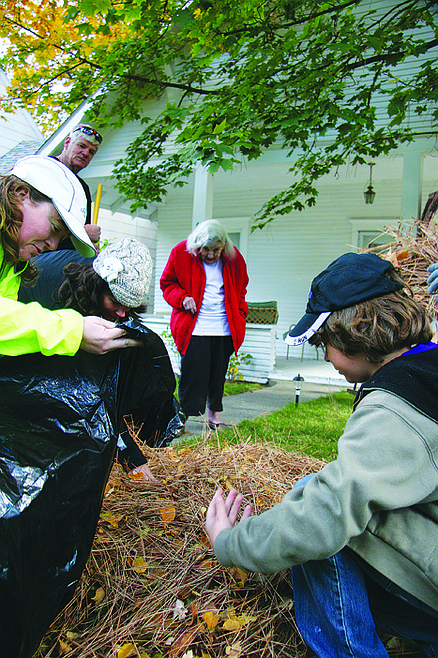 Marker obviously takes pride in a clean yard. While the clubs were finishing up bagging pine needles, she picked up the stragglers on her porch and in her flower beds.