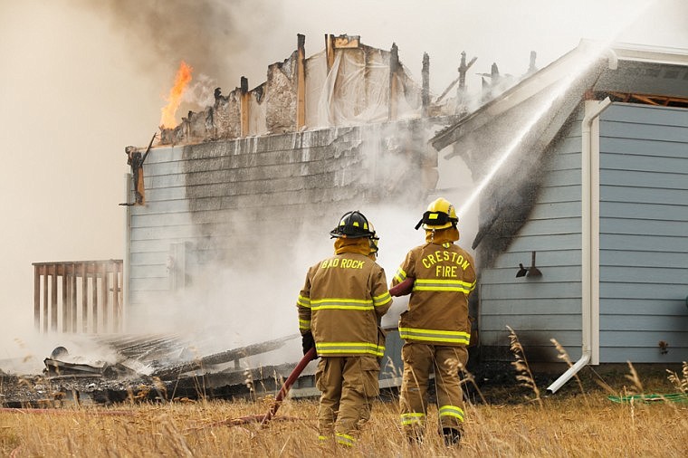 Badrock, Columbia Falls and Creston fire departments respond to a structure fire Thursday afternoon on Antler Bluff Lane off of Columbia Falls Stage Road.