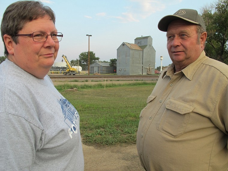 Kerry Finsaas and her husband, Darrell, right, have lived on their land for 34 years near Trenton, N.D., but the oil boom has brought a rail terminal and active oil well next to their property.
