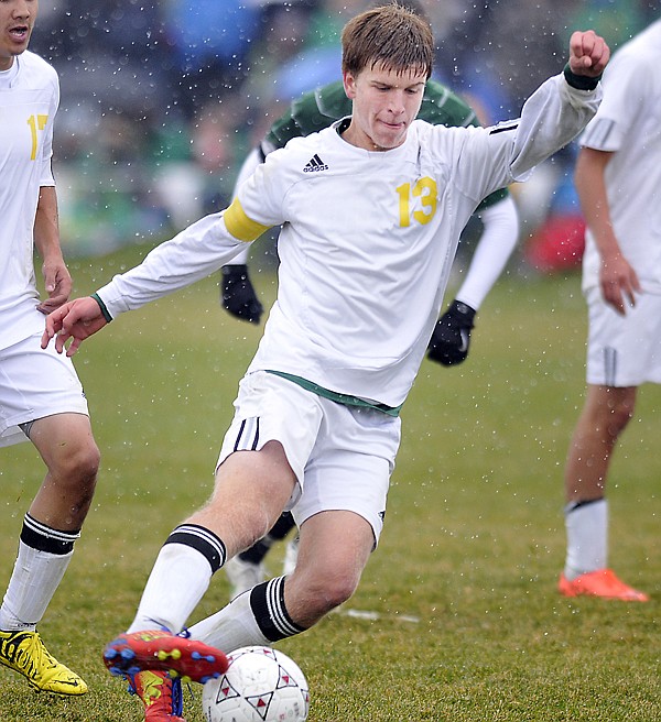 In the 33rd minute, center forward Nathan Boone played a ball wide to Donaldson on the left. Donaldson dribbled into the 18-yard box, but Billings Central goalkeeper Joey Thompson charged and smothered the shot.