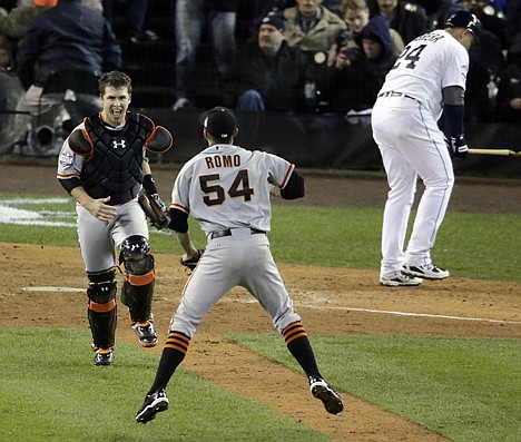 On a night of biting cold, stiff breezes and some rain, the Giants combined the most important elements of championship baseball. After three straight wins that looked relatively easy, they sealed this victory when Sergio Romo got Triple Crown winner Miguel Cabrera to look at strike three for the final out.