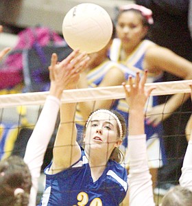 Sophomore Hailey Craig kill and point makes it 13-8 Loggers second game vs. Whitefish 10-25-12. In first game, first serve of the evening, Hailey had an ace.