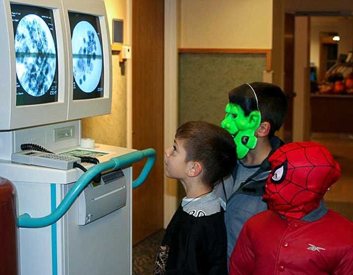 Trick-or-treaters dump their candy on a tray, and it's run through the X-ray machine for all to see. Technicians take precautions to ensure no one is exposed to radiation, said Connie Opheikens, the hospital district's community relations coordinator.