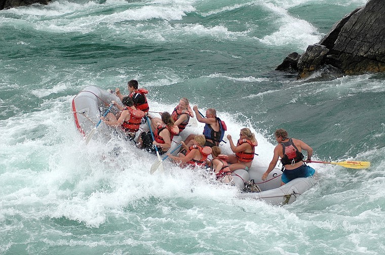 Aiming for the heart of the beast, we propelled the raft forward with determined strokes. Should we perish, at least we could take solace in the fact that our dying blaze of glory would be documented for posterity by the Rafting Co. photographers perched atop a rock along the riverfront to witness the carnage.
