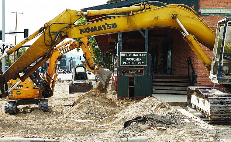 Excavators tear up the parking lot of The Loading Dock on Wednesday afternoon to make way for new sidewalks, landscaping and a courtyard.