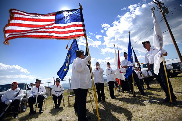 Richard Sauerbier of the Flathead Valley United Veterans holds the American Flag as the crowd begins to gather for the Sept. 11 National Day of Service and Remembrance on Tuesday at Demersville Cemetery near Kalispell.