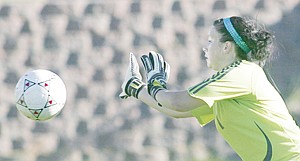 Nice save by keeper Rebecca Kyriss in first half action vs. Laurel