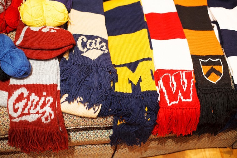 Patrick Cote/Daily Inter Lake University themed scarves on display Monday afternoon at Camas Creek Yarn. Monday, Sept. 10, 2012 in Kalispell, Montana.