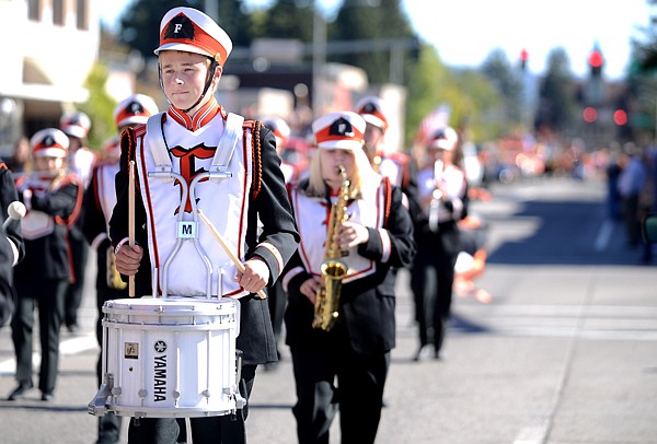 The Flathead High School Homecoming Parade on Thursday afternoon was led by the marching band including senior Lukas Lorentz of the drum line.