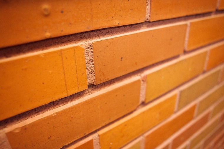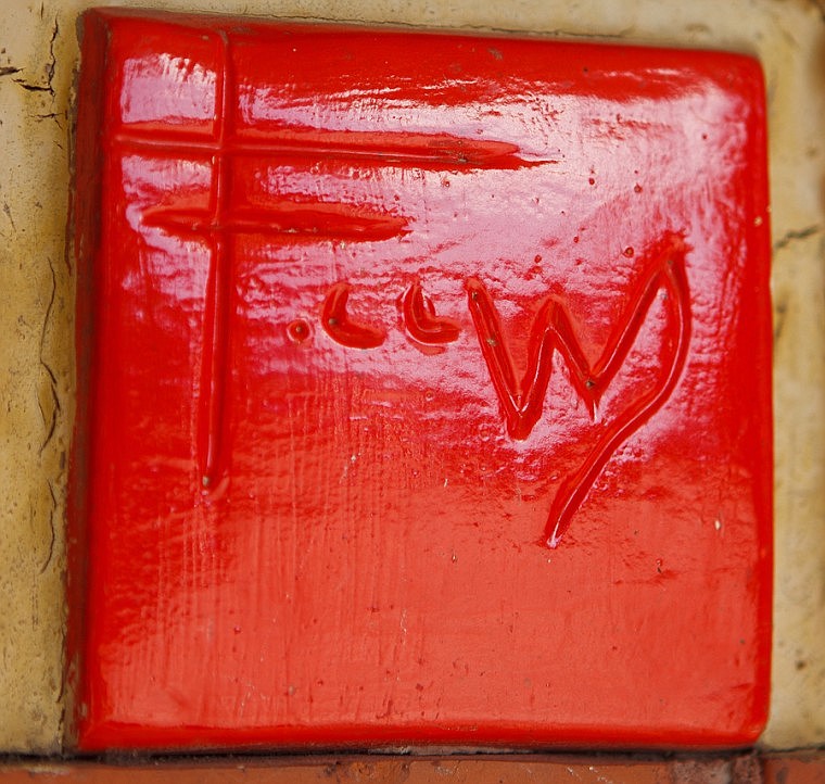 Some of the features remain, though. Wright chose bricks of a variegated orange-tan hue for the clinic, with mortar tinted tan to match. To emphasize the building’s horizontal thrust, he had the mortar raked a half-inch deep on the horizontal joints and left flush on the vertical.