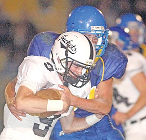 Josh Bowers tackles Chris Bergman fourth quarter.