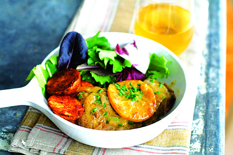 So for this recipe, I added orange slices to the juice in the sauce. The white pith in the peel provides a bitter edge. The sherry wine vinegar and Dijon mustard are there to offset the sweetness of the orange juice.