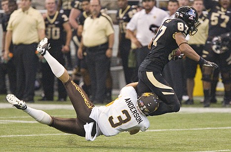 In a battle of teams seeking their first win of the season, it was the Cowboys (1-3) celebrating inside the Kibbie Dome after Brett Smith found Jalen Claiborne for a 25-yard touchdown pass on Wyoming's first play in overtime. Idaho backup safety Trey Williams was in position to make a play on the ball, but the junior seemed to trip before he jumped, allowing Claiborne to play the role of hero in front of a crowd of 13,558.