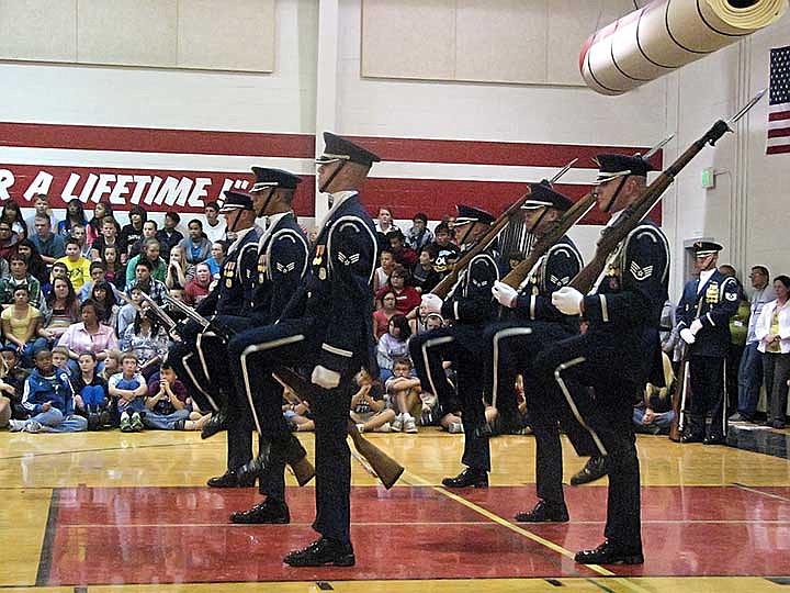 The Air Force drill team performed for about 1,000 students at Chief Moses Middle School on Thursday.
