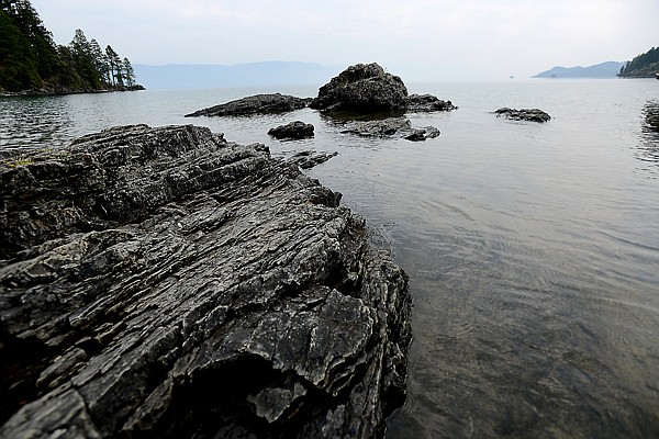 The view of Flathead Lake from the shore at the Flathead Lutheran Bible Camp was obscured by smoke over the lake on Tuesday south of Lakeside.