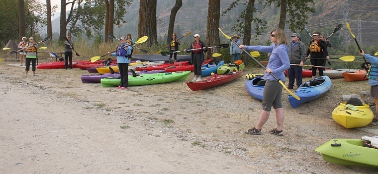 Participants in the Beyond Becoming an Outdoors Woman workshop perfect their strokes before they go kayaking on the Clark Fork River. In all, Beyond BOW had 22 kayakers at this event