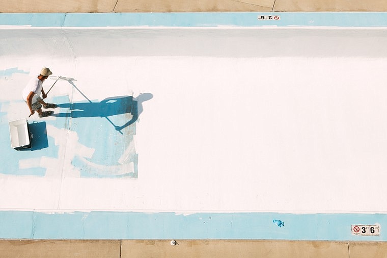 Patrick Cote/Daily Inter Lake Richard Fischer of Triton Construction uses a roller Wednesday afternoon to apply epoxy to the bottom of the pool at Woodland Waterpark. Wednesday, Sept. 26, 2012 in Kalispell, Montana.