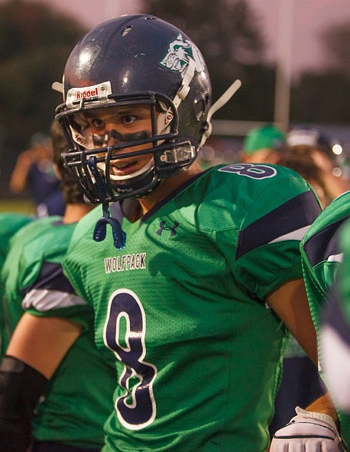 Patrick Cote/Daily Inter Lake Reid Siderius on the sideline Friday evening during the Wolfpack's matchup against C.M. Russell at Legends Stadium. Friday, Aug. 31, 2012 in Kalispell, Montana.