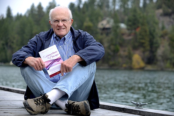 Miles Finch, author of Somewhere by Chicago with his book on Tuesday, September 25, along the western shore of Flathead Lake.