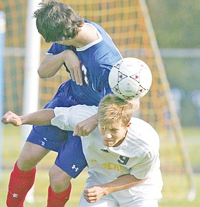 Columbia Falls' Chase Ramberg competes with Jason Schnackenberg for a header in second half.