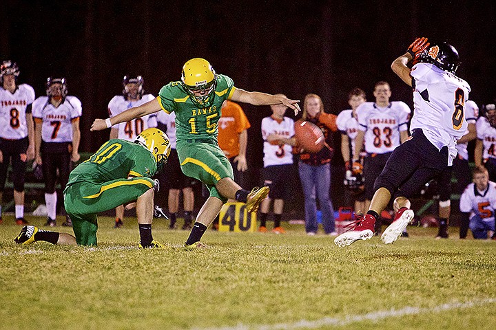 Cade Coffey - who also plays soccer at Lakeland - kicked a 45-yard field goal as time expired and the Lakeland Hawks defeated the Post Falls Trojans 17-14 in a nonleague game at Corbit Field.