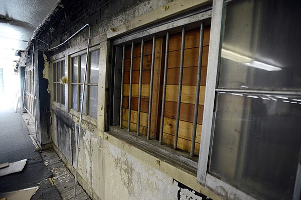 A row of windows boarded up and until recently dry walled over are part of the rehabilitation that Paul Roybal is doing to the Kelly-Main Street building in downtown Kalispell. The building was damaged in a fire in 1976. (Brenda Ahearn/Daily Inter Lake)