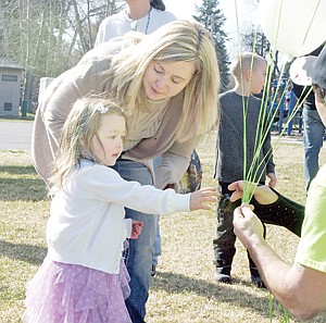 Hadleigh Wood, 3, picks out a balloon Saturday during the Easter egg hunt at Troy's Roosevelt Park.