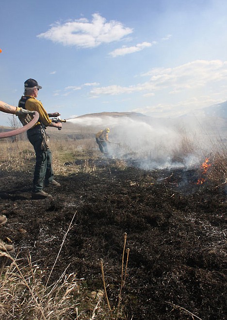 Firefighter Pat Erving helps extinguish the flames of a controlled fire set on Friday on Upper Lynch Creek Road.
