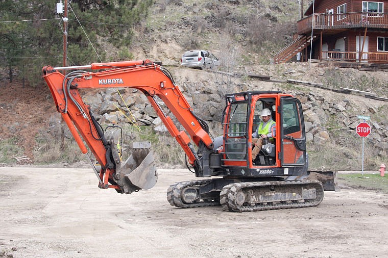Muster Construction, a Thompson Falls based company, flattens the road on Hubbard Street after adding a link into the town water system.
