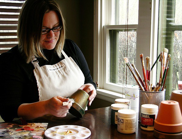 According to the artist, this class features a number of simple techniques to brighten up basic pots and planters. Flowers uses all water-based, nontoxic paint.