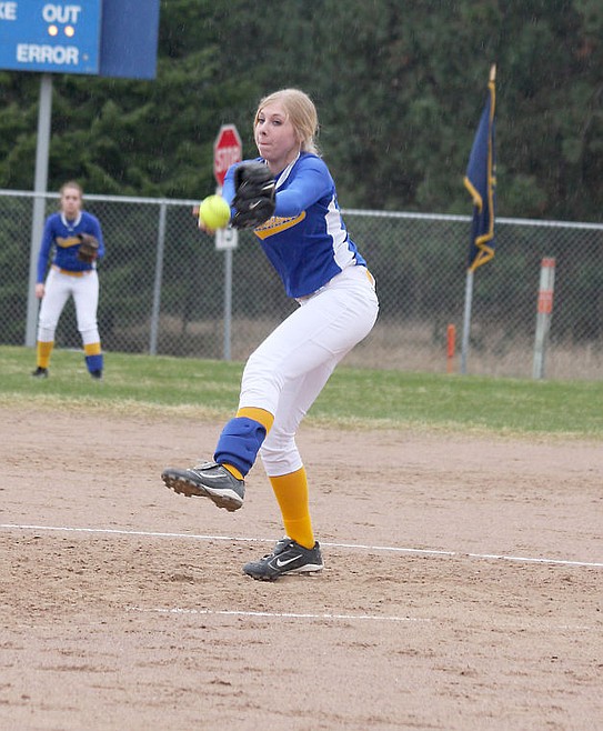 The Lady Hawks pitcher winds up.